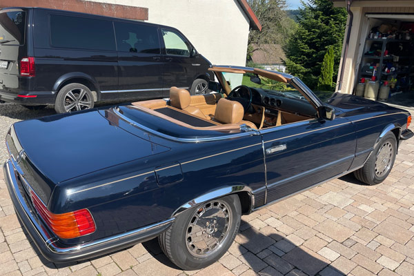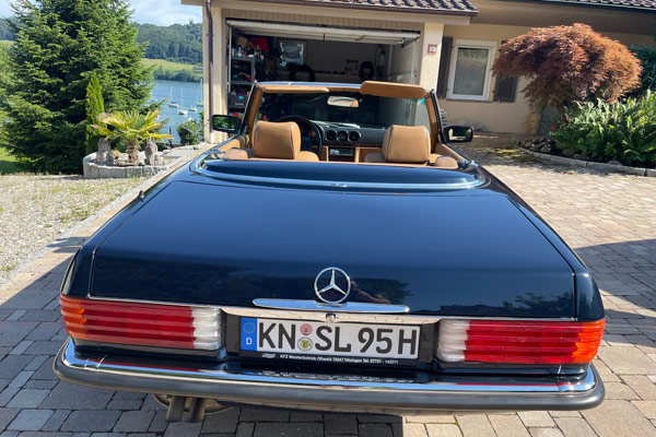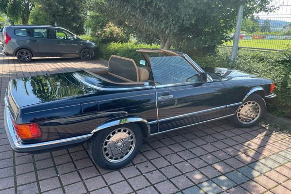 Um den Boliden auch bei einem Crash nicht alt aussehen zu lassen, integrierten die Ingenieure diverse Versteifungen: Näheres auch unter diesem Link. So bestand der Mercedes SL 560 (auch ohne Targabügel) die scharfen Sicherheitsbestimmungen der US Amerikaner. Der Achtzylinder treibt das vollends alltagstaugliche Mobil seidenweich voran. Dabei schaltet die serienmäßig verbaute 4-Gangautomatik, wie wir es von den Schwaben kennen. Unaufgeregt und einfach sauber. Wie Ihr sicherlich auf den Bildern gesehen habt, ist der Betrieb mit H-Kennzeichen zulässig.